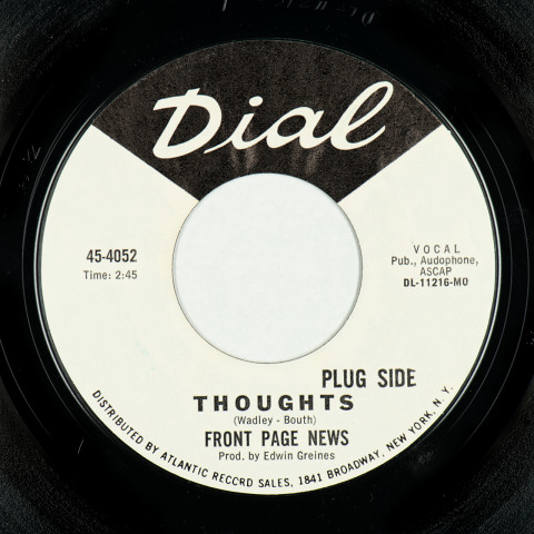 (v2)(wlp) Dial (1) (USA) [US 45s: 4000-4099 (1964-1970)] 7" Single 45-4052 Front Page News Thoughts // You Better Behave — White labels promo issue, no indication that it was for promotional purposes, with "PLUG SIDE" on A-side